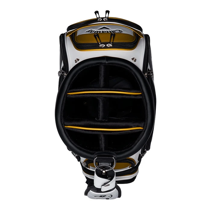 The same bag Callaway Tour Professionals are using in 2022. Tour branding, GPS pocket, integrated umbrella sleeve, and two full-length apparel pockets.