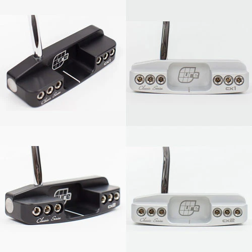 CX1The Cure Classic Series cx1 square back delivers the incredible stability and forgiveness of a High MOI mallet in a visually stunning, traditional blade style putter. Precision milled in the USA, the cx1 is just slightly oversized (5” blade length) with tungsten weight inserts in the heel and toe, plus 42g of weight adjustability via 6 removable weights. With a higher center of gravity, lower loft and deeper face that impacts the ball at the equator, the cx1 deliver a superior roll – getting the ball rolling sooner, helping it stay on the intended line.The cx1 combines the game improvement performance of a Higher MOI mallet with the simple, clean appearance of a blade – It’s the best of both worlds!• Available R /L handed in standard lengths.• Conforms to USGA RulesCX2The Cure Classic Series cx2 round back delivers the incredible stability and forgiveness of a High MOI mallet in a visually stunning, traditional blade style putter. Precision milled in the USA, the cx2 is just slightly oversized (5” blade length) with tungsten weight inserts in the heel and toe, plus 42g of weight adjustability via 6 removable weights. With a higher center of gravity, lower loft and deeper face that impacts the ball at the equator, the cx2 deliver a superior roll – getting the ball rolling sooner, helping it stay on the intended line.The cx2 combines the game improvement performance of a Higher MOI mallet with the simple, clean appearance of a blade – It’s the best of both worlds!• Available R /L handed in standard lengths.• Conforms to USGA Rules