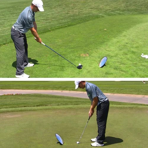 Eyeline Single 360 MirrorThe 360Ëš Mirror is actually faster than a camera. When you set up to this mirror you will see yourself from club head to the top of your backswing without turning away from the ball. Learning new movements or making adjustments are quick and easy because you get instant visual feedback. Mark the mirror with the positions you want and get to work. Dramatically speed your improvement!The convex shape shows a full view of your swing and stroke. Place it in front of you or between your feet in your putting stroke. You will see all your alignments, positions, and movements. The newly redesigned stand is great for indoor or outdoor use. Mirror is 12″ x 10.5″