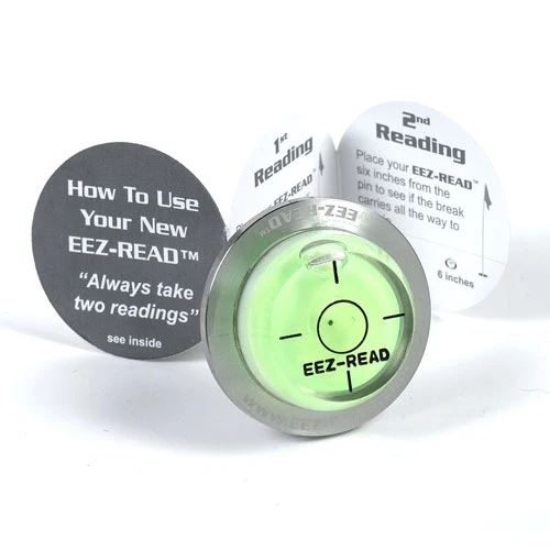 Momentus EEZ-READ Green ReaderRead the greens like the pro’s with the EEZ-READ golf putting aid. EEZ-READ is a high accuracy bubble level attached to a stainless steel watchmakers base that shows you the exact break of the green.Used by PGA Tour caddies everywhere, this unique putting aid is perfect for putts under 20 ft and is sure to build your putting confidence.Butch Harmon says it’s “One of the smartest putting aids I’ve ever seen”Practice with the EEZ-READ putting aid and you’ll be amazed how well you putt the nexttime you play competitively! Now you can plot the greens you play the most!