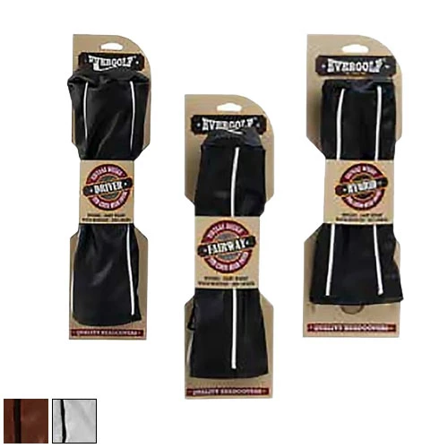 EverGolf Classic HeadcoverDesigned for style and function these classic barrel shaped headcovers are made from quality synthetic leather. Each headcover is individually sewn with an elastic strap on the inside as well as soft plush to keep the headcover snug on the golf club. The outside leather material is water resistant and is available in three colors: Black, Mahogany, and Rustic White.