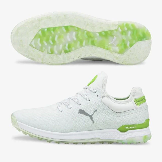 The multi-material PROADAPT outsole combines high-durometer, abrasion resistant TPU perimeter chassis that provides a stable under foot feel while multiple shapes of lugs provide ridiculous ground gripping traction. While centralized Crystal Rubber engendered in an anatomic shape following your gait for an easy heel-to-toe ride provides grip on any surface protecting you from slipping while on the course, to the club house, and anywhere in between. The upper features a new EXOSHELL material that is engendered to provide light weight structure and a 1 year waterproof warranty. The PROADAPT ALPHACAT will allow you to attach every shot in style… and comfort.