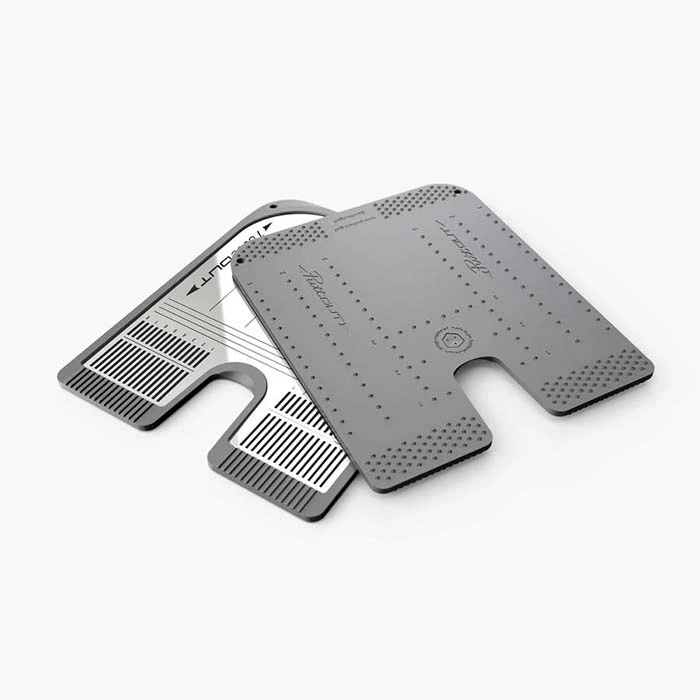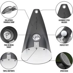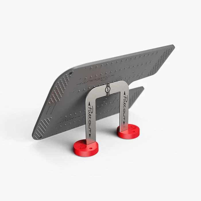 In a compact three-layer design, the PuttOUT Putting Mirror comprises an anti-scratch coating, a solid steel inner plate to prevent warping and breakage, and a spiked-base rubber surround, holding the mirror in place wherever you choose to grind.
